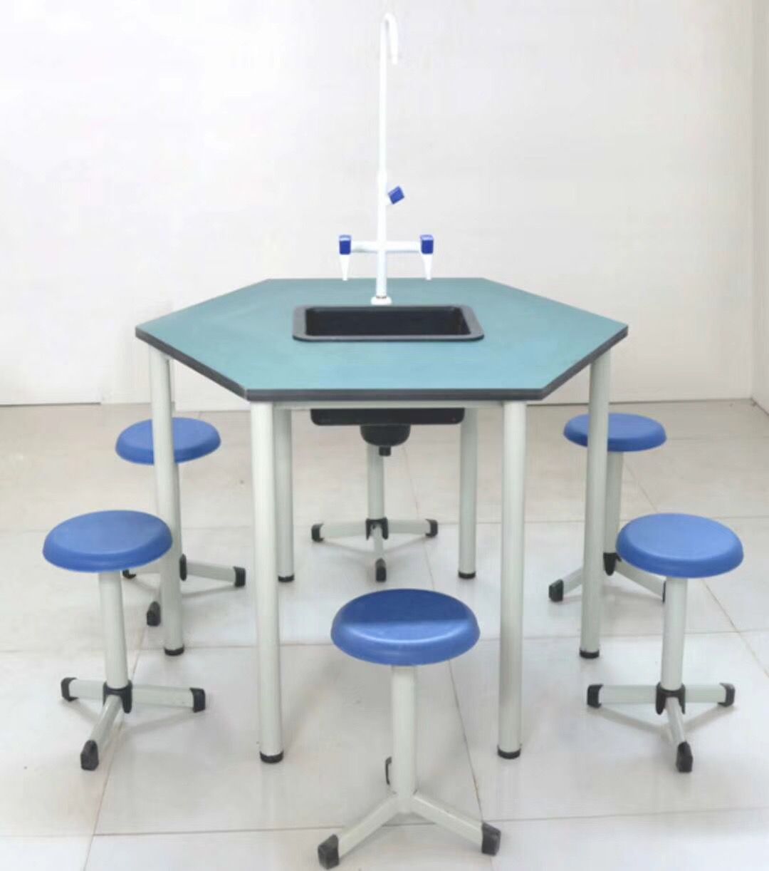 Alum Alloy Wood Structure School Lab Furniture Hexagonal Laboratory Table Chemistry Lab Student Bench