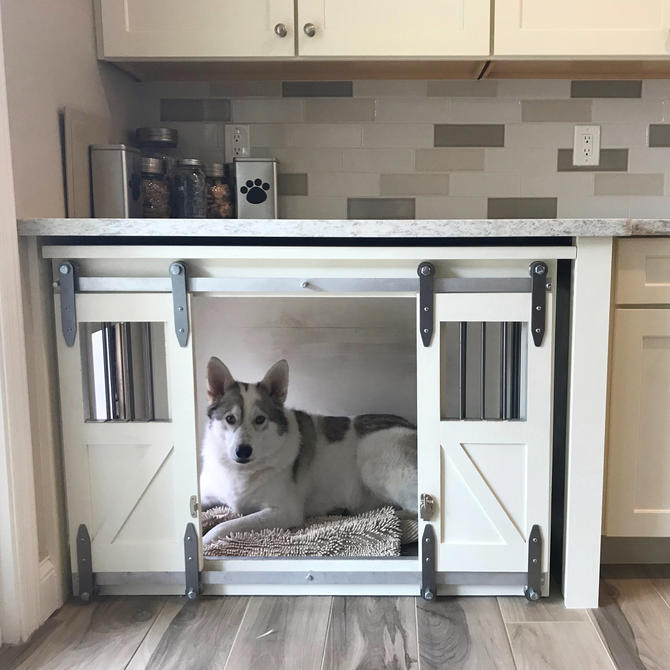 Rustic Dog Crate Sliding Barn Doors Fully Custom Dog House Credenza Unique Rustic Furniture Farmhouse Pet Dog Kennel By