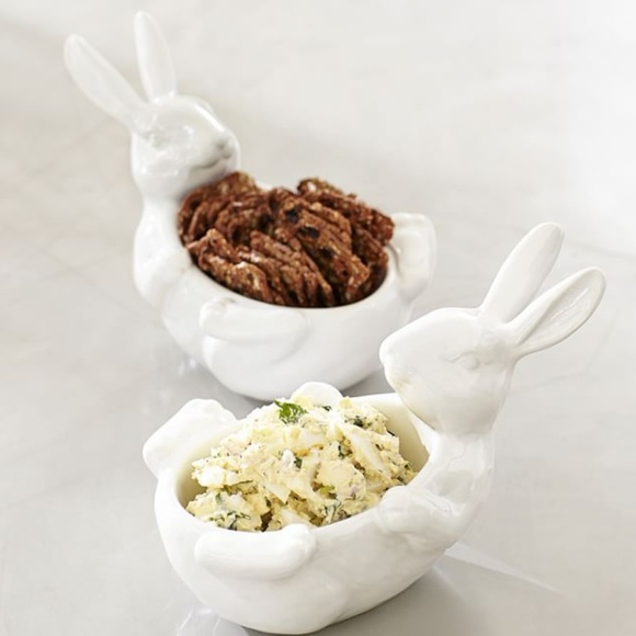 Details About New Pottery Barn Georgia Bunny Triple Condiment Bowl Easter Rabbit Serving Dish