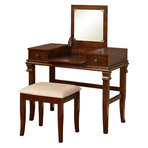 Linon Home Decor Vanity 2 Piece Walnut Vanity Set Linon Home