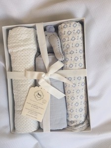 Details About Pottery Barn Baby Muslin Elephant Thumbie 3 Swaddle Set Light Blue New In Box