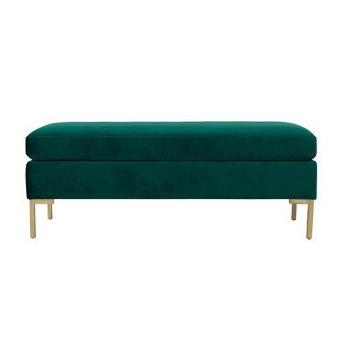 Bedford Large Velvet Decorative Bench With Pillow Top Emerald Green Homepop