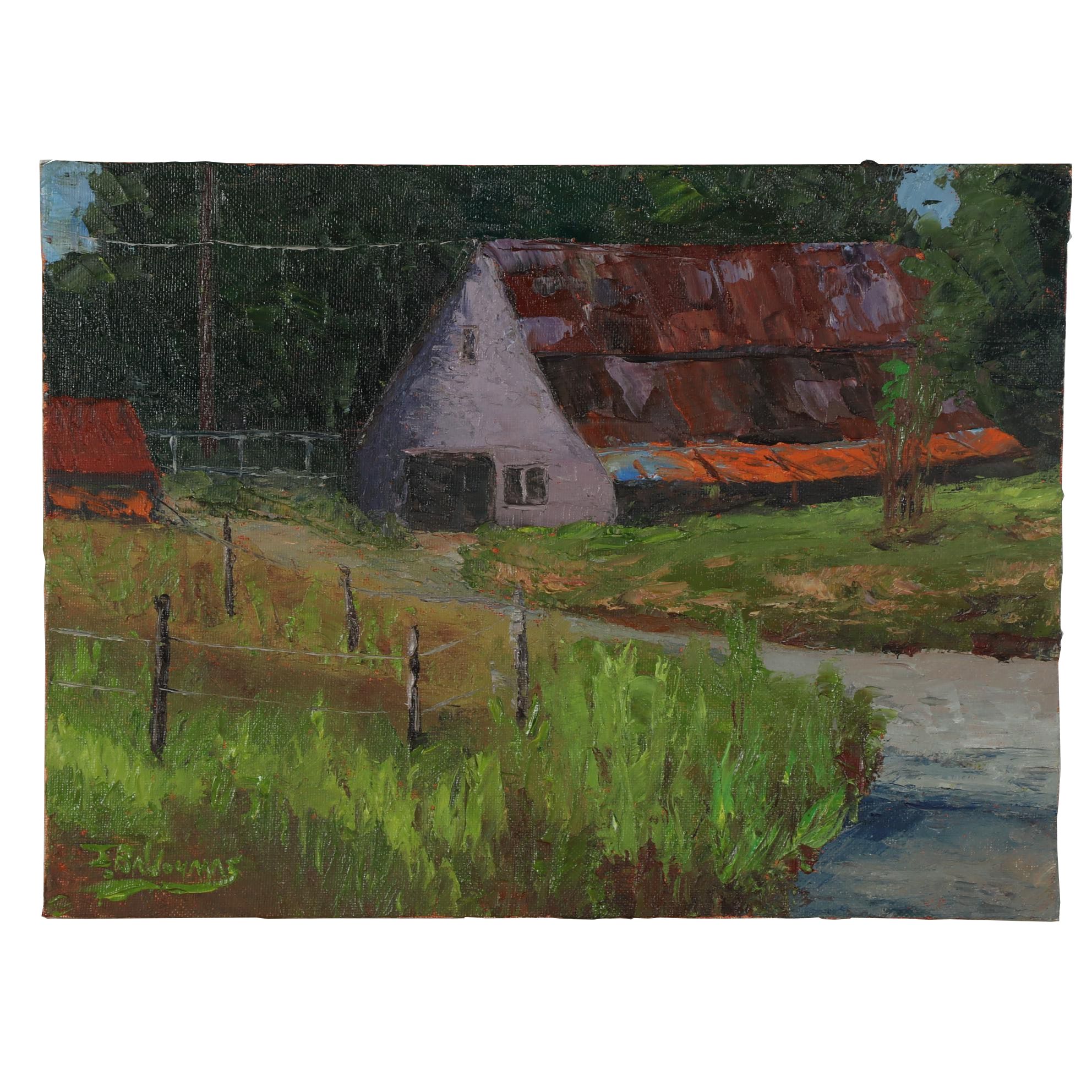 Art De Joie Rural Landscape Oil Painting Old Tennessee Barn