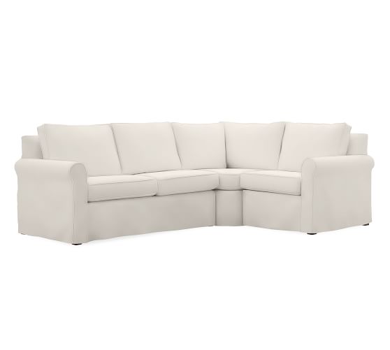 Cameron Roll Arm Slipcovered 3 Piece Sectional With Corner