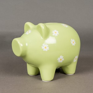 Details About Pottery Barn Kids Green Daisy Flower Glazed Ceramic Pig Piggy Bank Excellent