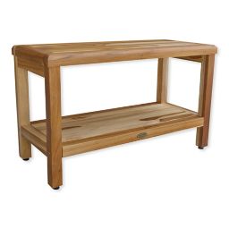 Serenity 18 Inch Teak Shower Bench With Shelf Fully Assembled